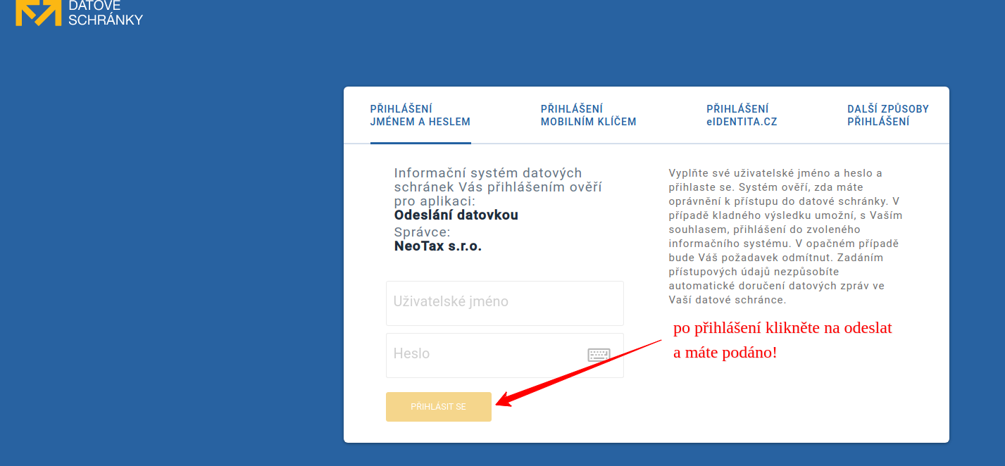 - přihlášení do datové schránky a odeslání