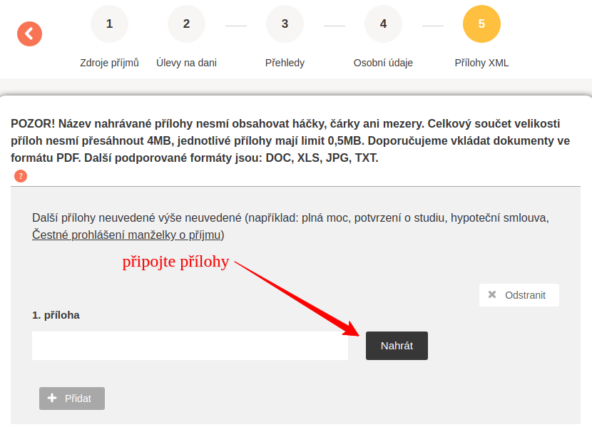 - v kroku 5 nahrajete přílohy
