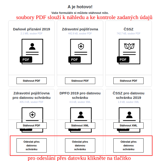 - a máte hotovo. Po úhradě poplatku za zpracování daňového přiznání a přehledů stačí kliknout na tlačítko odeslat přes datovou schránku