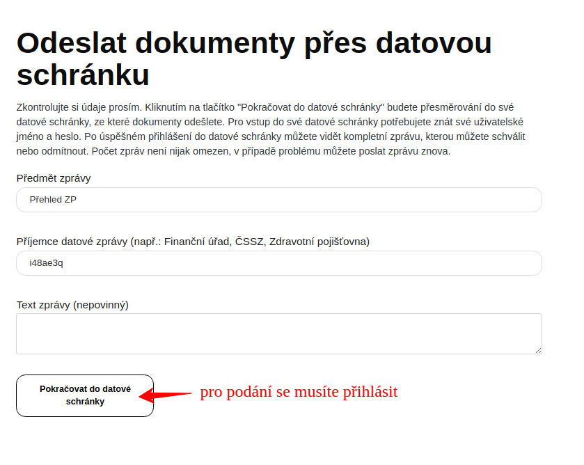 - vygeneruje se předvyplněna zpráva pro datovou schránku