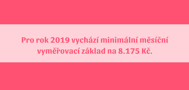Pro rok 2019 vychází minimální roční vyměřovací základ 98 100 Kč, tedy minimální měsíční vyměřovací základ je 8 175 Kč. Kdo v předešlém roce nepodnikal celých dvanáct měsíců, vynásobí měsíční vyměřovací základ počtem měsíců, kdy podnikal.