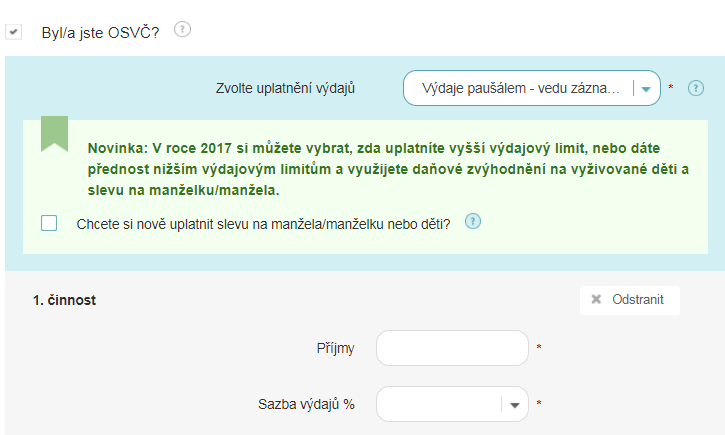 Online aplikace na přípravu daňového přiznání na OnlinePřiznání.cz.