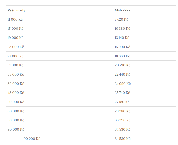 Zásadní informací pro maminky s nadstantartním měsíčním výdělkem je, že maximální výše mateřské je 34 620 Kč.