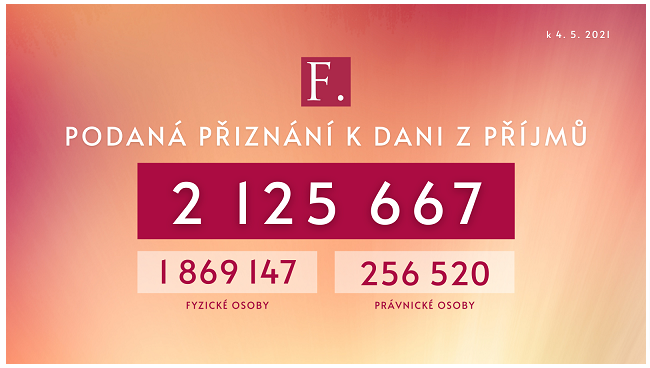 Z toho bylo 1 869 147 daňových přiznání od fyzických osob a 256 520 od osob právnických. Přes 2 miliony poplatníků se tak vyhlo sankci. Ti, kteří nevyužili papírovou formu podání, mohou využít elektronické podání do 1. června.