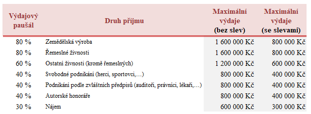 Maximální výdajový limit tedy neznamená, že při vyšších příjmech nemůžete paušální výdaje použít. Naopak. Paušální výdaje je možné použít, jen je omezena maximální výše výdajů.