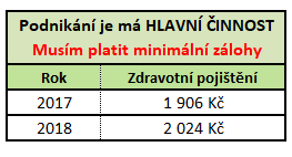 Na rozdíl od podnikatelů, pro které je podnikání hlavní činnost, nemáte povinnost platit minimální zálohy na zdravotní pojištění, které jsou vypočítané právě z minimálního vyměřovacího základu a každoročně se mění. Pro rok 2017 byla minimální záloha na zdravotní pojištění 1 906 korun. V roce 2018 je to už 2 024 korun.