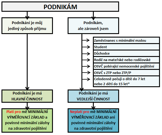Protože je naším cílem Vám s daněmi co nejvíce pomoci, můžete k vyplnění Přehledů využít naši online daňovou kalkulačku ZDE. Jediné, co potřebujete vědět, zda je pro Vás podnikání pro účely zdravotního pojištění považované za hlavní nebo vedlejší činnost. Což můžete zjistit poměrně jednoduše pomocí našeho schématu. Z kterého také odvodíte, zda pro Vás platí minimální vyměřovací základ a povinnost platit minimální zálohy nebo nikoliv.