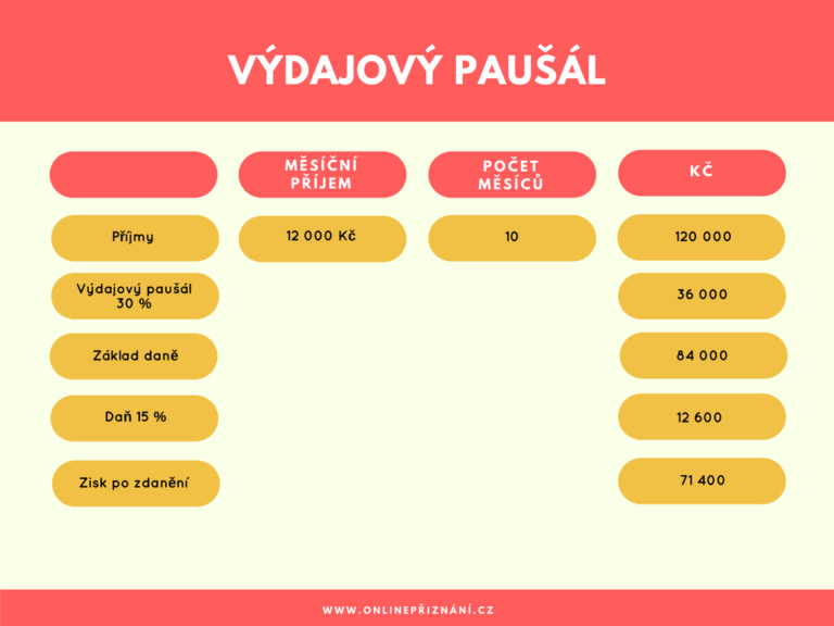 Adam má příjmy z pronájmu za deset měsíců v roce 2018, zbylé dva měsíce zůstává byt nepronajatý a uplatní si paušální výdaje ve výši 30% příjmů.