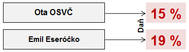 Osoba samostatně výdělečně činná - živnostník Ota - podniká jako fyzická osoba, a proto musí ze svých příjmů platit daň z příjmů fyzických osob, která je 15 %. Společnost s ručením omezeným, kterou si založil Emil, patří mezi právnické osoby, a proto je zisk společnosti zdaňován daní z příjmů právnických osob, která je 19 %.