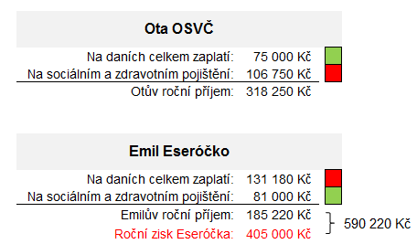 V případě zdanění pro nás byl favoritem Ota a jeho živnost, stačí ale přidat sociální a zdravotní pojištění a situace se nám začíná komplikovat. Emilovo eseróčko se vrací do hry.