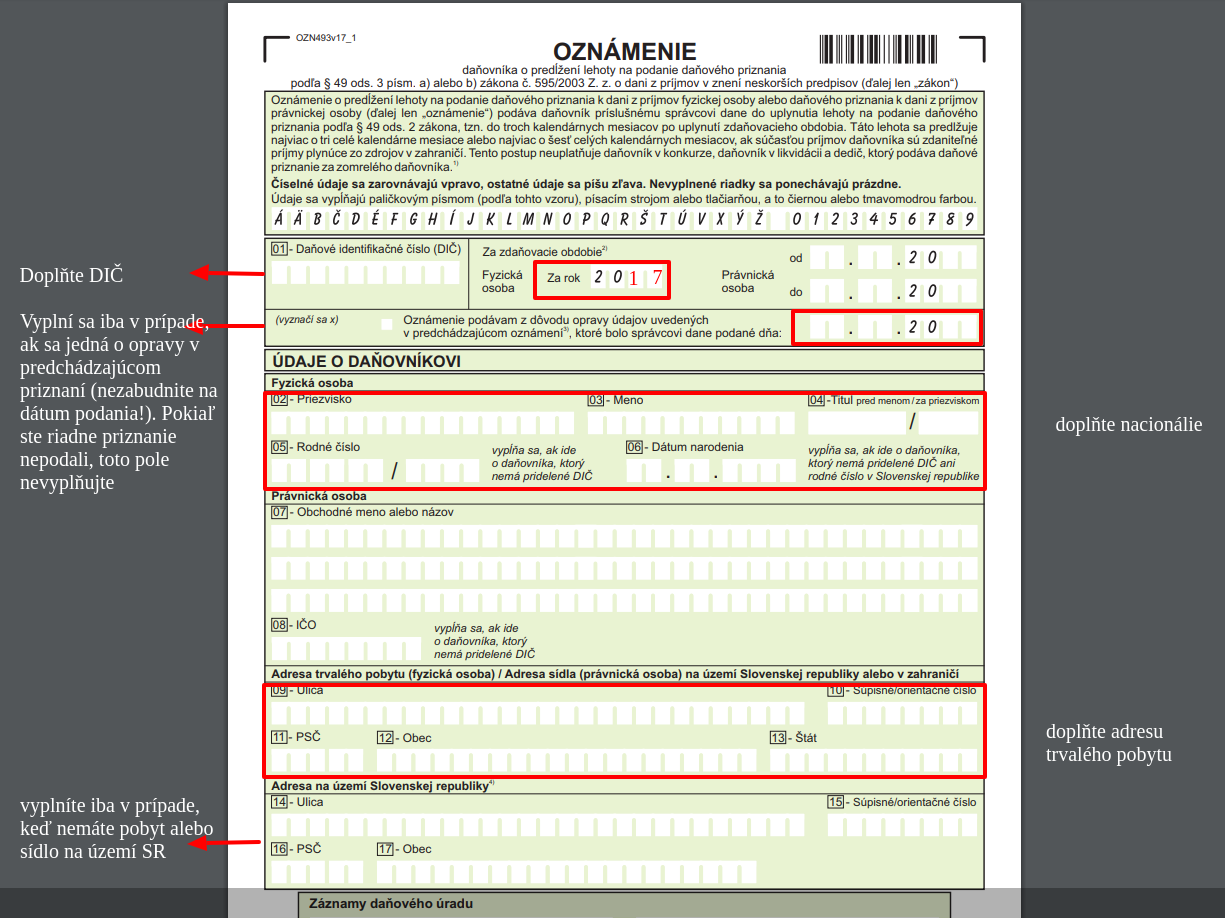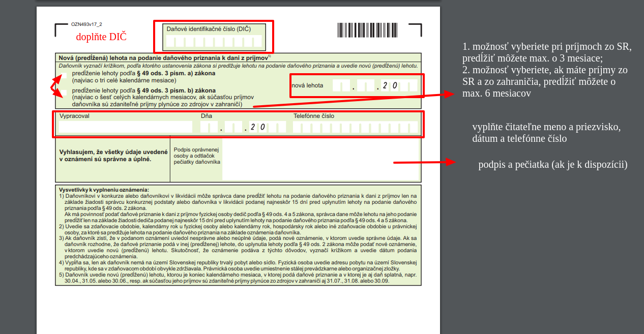 - Oznámenie daňovníka o predĺžení lehoty na podanie daňového priznania doručíte Finančnej správe SR (daňovému úradu)
